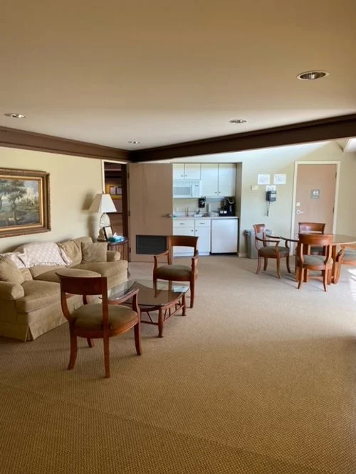 Our 433 sf parlor is great for small meetings and is equipped with a small table in the center of the room, with space around it to set up presentations. It is also equipped with a sofa and comfortable side chairs as well as a sink, microwave, coffee maker and small bathroom.